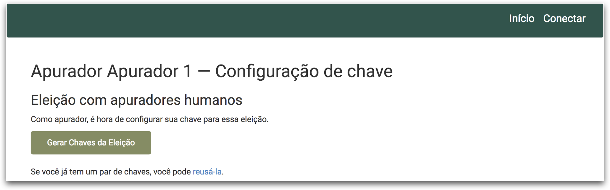 Clique no botão Gerar Chaves da Eleição.