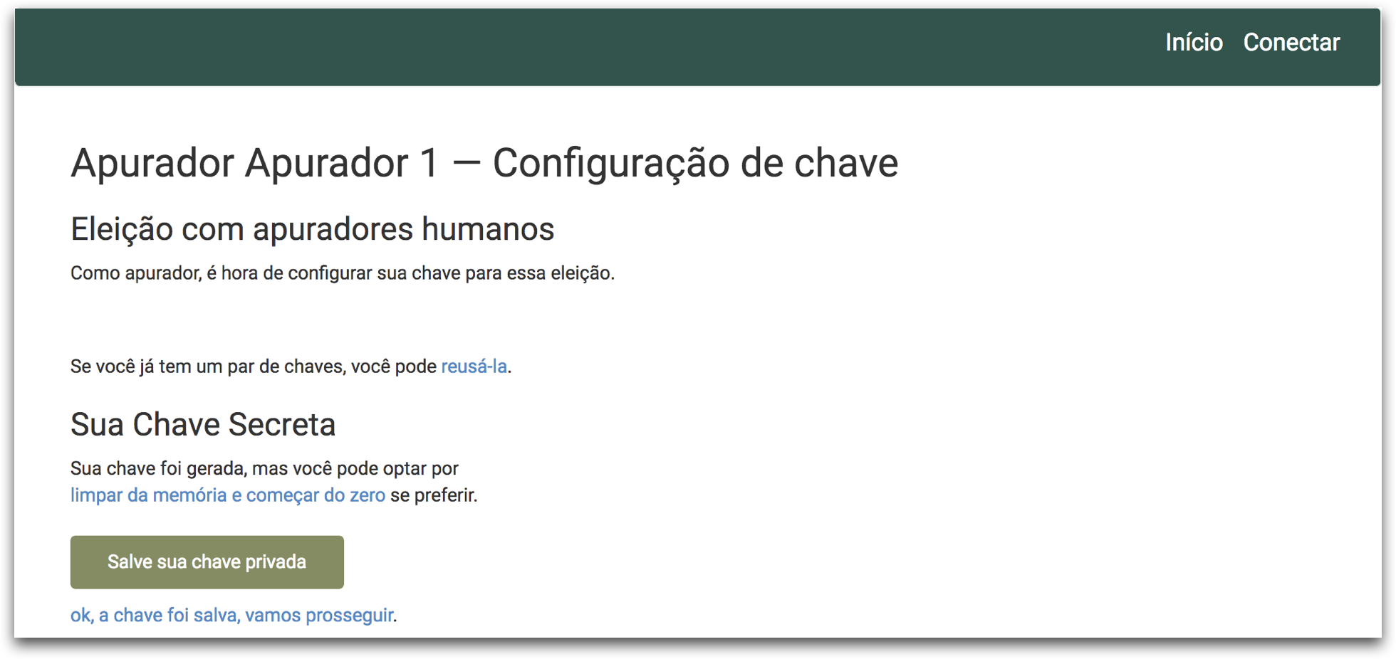 Clique no link ok, a chave foi salva, vamos prosseguir.