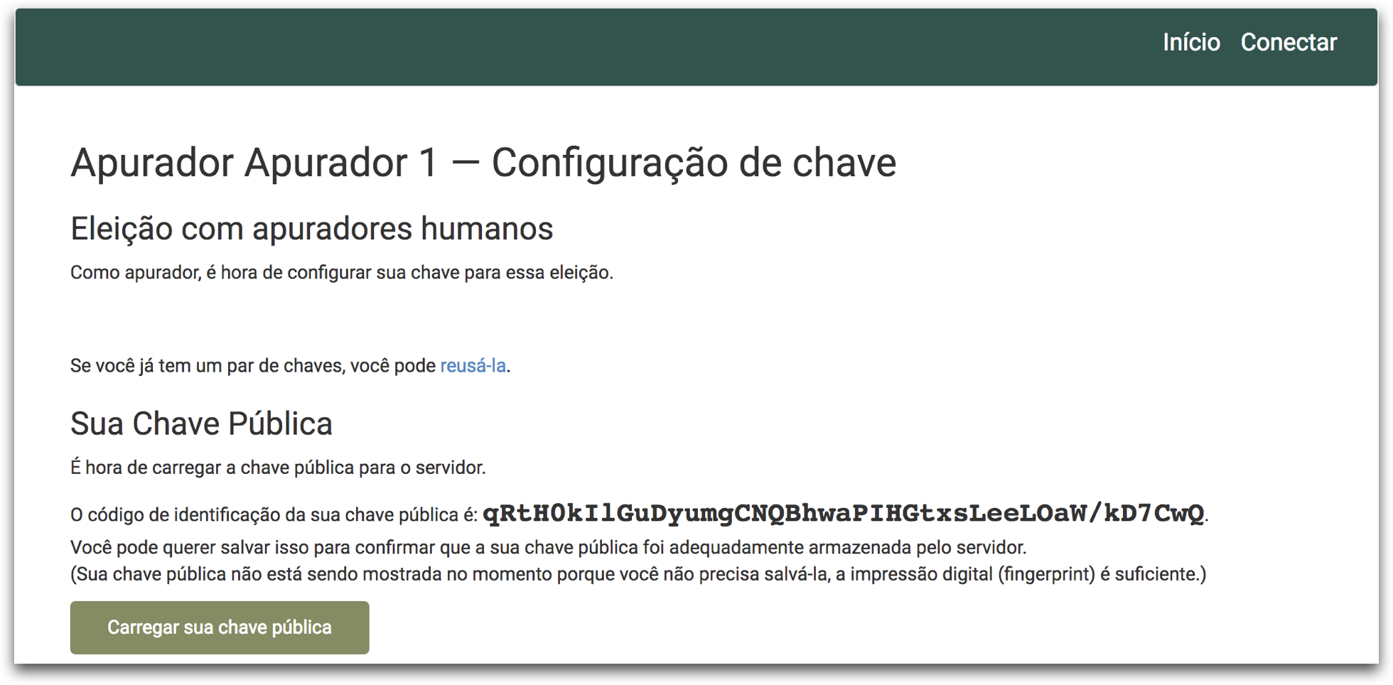 Por fim, clique no botão Carregar sua chave pública.